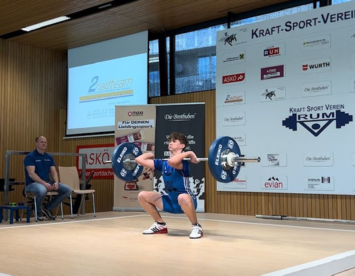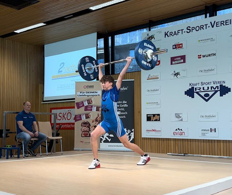 Florian Barth war dann am Abend in der nationalliga-Mannschaft am Start. Er siegte in der U-20-Wertung der Kat. -102 kg mit der neuen Bestleistung von 241 kg im Zweikampf (111 kg Reißen / 130 kg Stoßen)